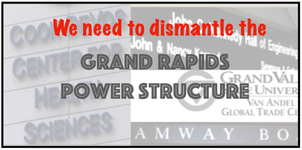 When I use the phrase, the Grand Rapids Power Structure and who has power, it is important to note that I mean power over. A local power analysis is designed to investigate who has power over – who oppresses, exploits and engages in policy that benefits them to the exclusion of everyone else – the majority of people living in Grand Rapids.