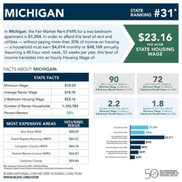 Then there is the cost of the 3 types of 595 apartments that will be part of the DeVos/Van Andel project. The cost of these apartments are: for a studio apartment, that would be $2,643 per month, $2,833 for a one-bedroom, and $3,401 for a two-bedroom. According to the National Low Income Housing Coalition, the average cost of rent for a 2 bedroom apartment in Michigan, based on the Fair Market Rate, is $1,204. However, the cost is higher in Grand Rapids, and according to the National Low Income Housing Coalition, for someone to afford the average cost of a 2 bedroom apartment in Grand Rapids, they would have to make $26.33 an hour. Most people I know do not make that kind of a wage.
