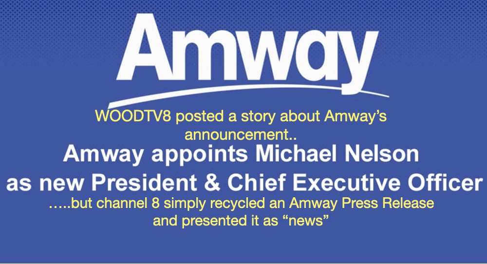 The Amway Corporation sent out a Press Release on Monday morning, which I am including here below in its entirety. The parts that are bolded in the Amway Press Release are what WOODTV8 posted as a “news” story.