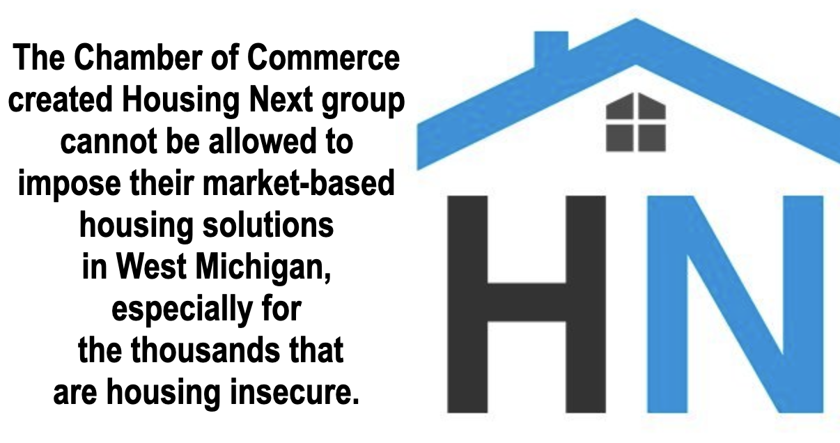 In the end, WZZM 13 does more harm than good, since they don’t center the lived experience of tenants in this city, they provide a platform for a GR Chamber of Commerce created entity that is committed to finding housing solutions with a market-based approach. Market-based solutions to the current housing crisis are a false solution, but that doesn’t matter, since the local news media has made Housing Next the darling of all things housing.
