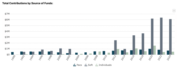 On top of all of this, Chevron spends a great deal of money to buy political influence at the federal level, according to Open Secrets. This influence peddling has exponentially increased in recent years, as is reflected in the graphic below, which is also from opensecrets.org.
