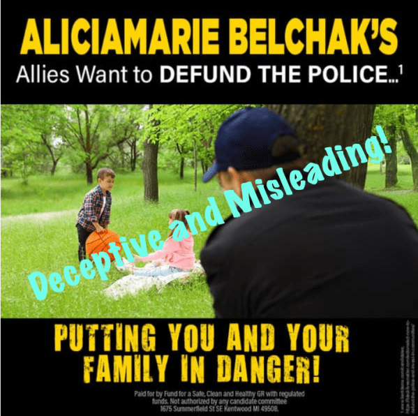 Deceptive mailers in the 1st Ward Grand Rapids City Commission race are making unsubstantiated claims about Alicia Marie Belchak