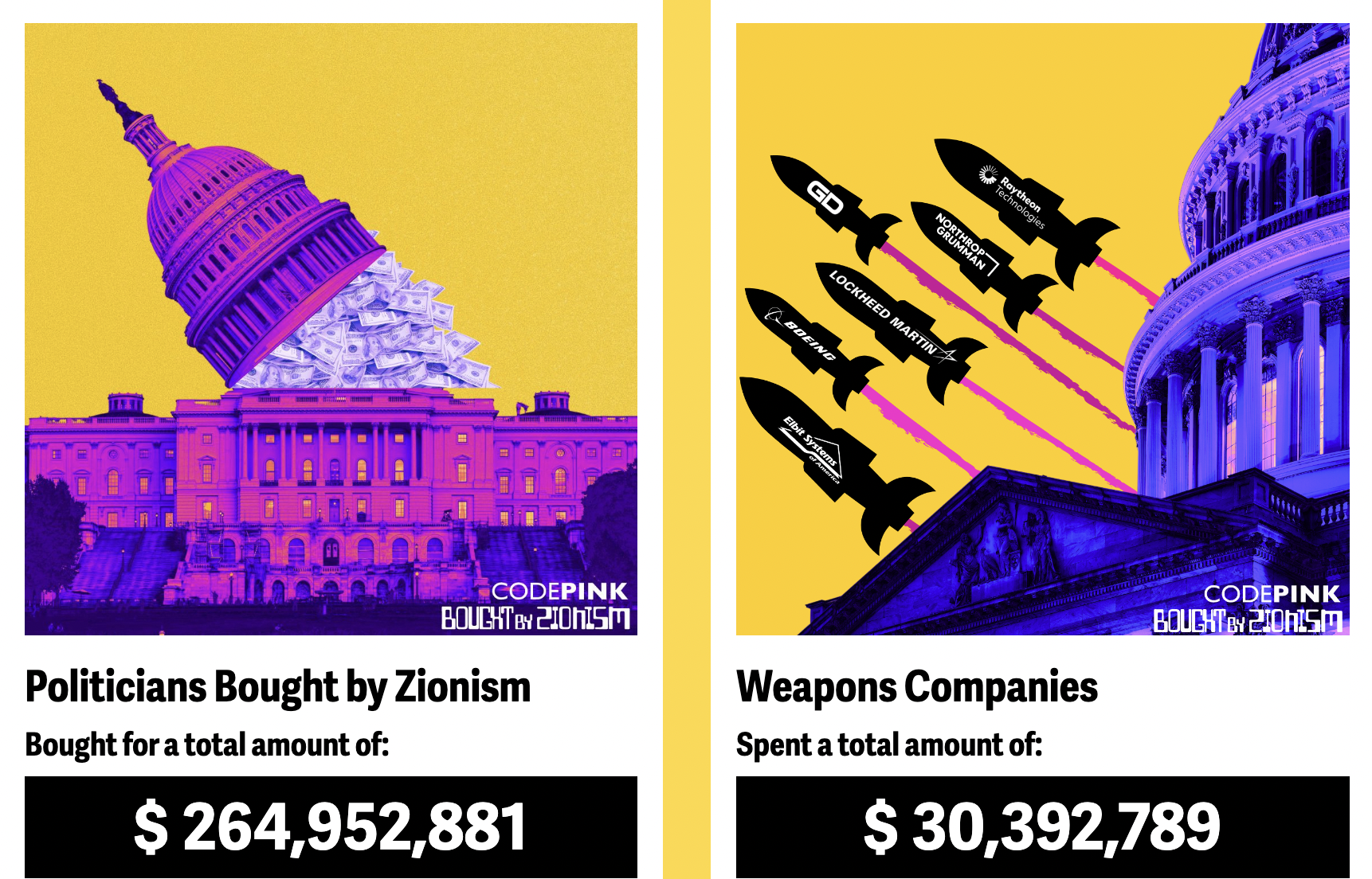 Image used in this post is from https://www.boughtbyzionism.org/, which provides great information on Pro-Israel money going to politicians, the weapons manufacturers, along with AIPAC & Zionist lobbying groups.