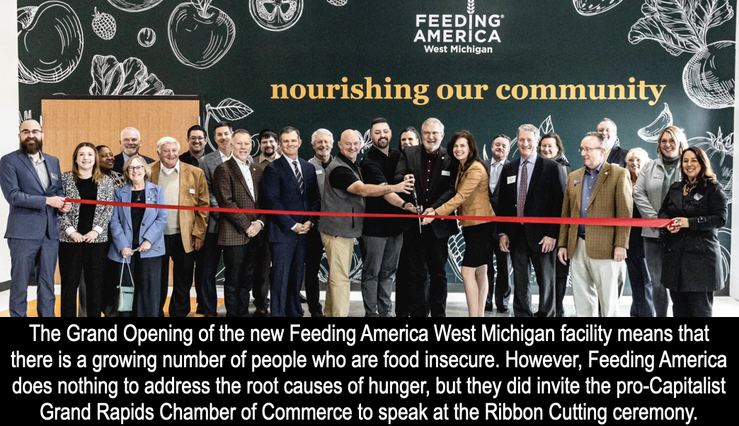 Ultimately, having the Grand Rapids Chamber of Commerce speak at a ribbon cutting ceremony is proof that Feeding America West Michigan will not actually end hunger, but merely provide the appearance that they actually care about people subjected to poverty, while partnering with organizations that profit from exploitation. Welcome to West Michigan Nice!