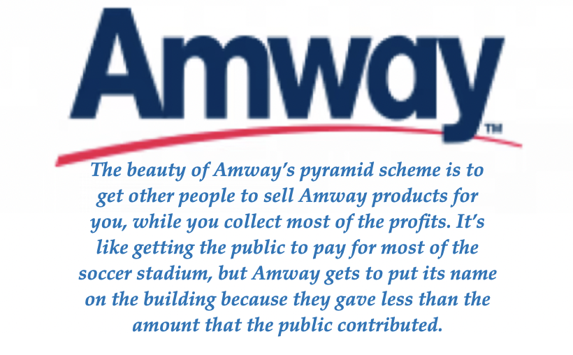 We know that we’re all stronger, and better, when communities come together and rally for a shared purpose. We’re excited to see what the future of West Michigan soccer holds. For our community, and for global fans of this great sport! GRIID – Of course Amway is the #1 global direct sales company. It’s because their get rich quick scheme has been able to con millions of poor people around the world that they too can make lots of money selling Amway products. The reality however, is that few people get rich from selling Amway products. The goal is really not to sell Amway products, but the idea of Amway and recruit as many people as possible to sell Amway products. Every person you convince to sell Amway products has to give you part of the sales, resulting in a small number getting super rich without having to do much work, while the majority of those who are actually selling Amway products will put their lives in financial jeopardy. This is the cold hard reality of Amway’s pyramid scheme, a scheme that is based on exploitation.