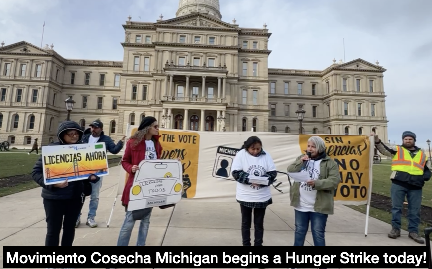 Movimiento Cosecha Michigan will hold a press conference on the steps of the Capitol to announce the hunger strike and introduce the individuals who are putting their health and well-being on the line for justice. Undocumented Michiganders deserve the right to drive without fear, and it is time for elected officials to deliver on their promises