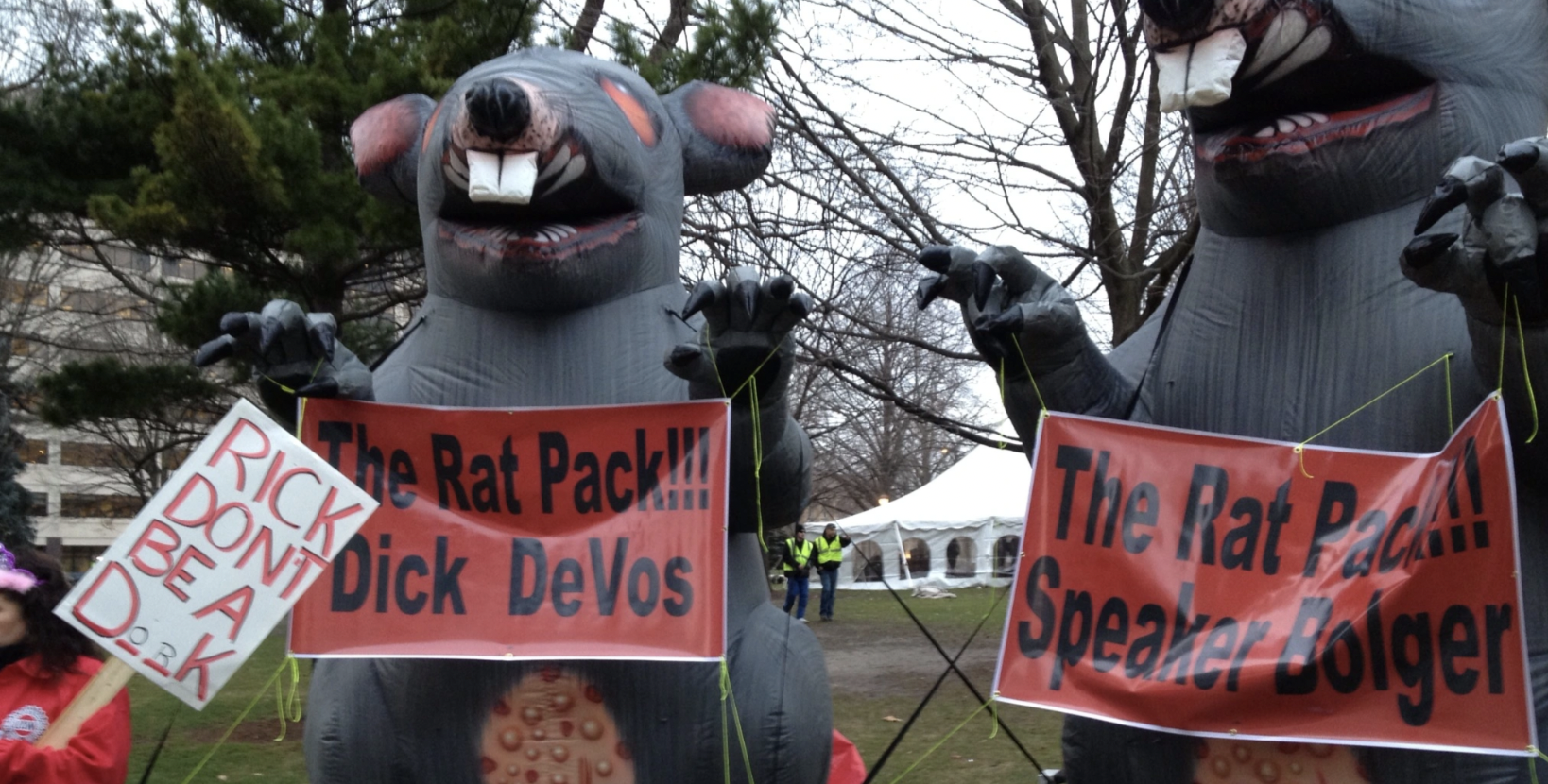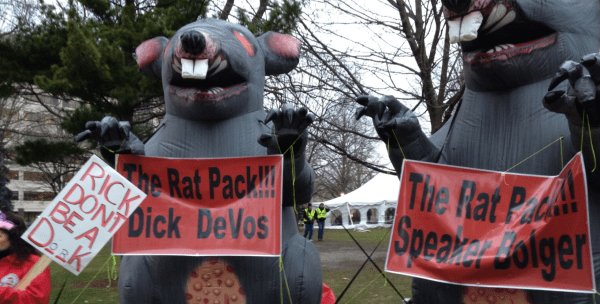 Those with economic and political power rarely feel the need to substantiate claims they make, since this is one of the perks of being rich and powerful. The point about stripping workers’ rights by repealing the Right-to-Work policy is worth saying something about. If this policy was so anti-worker, then why did 10,000 workers show up to the State Capitol in 2012 to protest against the Right-to-Work policy that Governor Snyder put in place? In addition, it should be mentioned that Dick DeVos and his friends with the West Michigan Policy Forum were the main organization that pushed a Right-to-Work policy for Michigan beginning in 2010, when they brought in Rick Berman to speak at their annual policy conference. Lastly, it is worth noting that the Mackinac Center for Public Policy think tank was also working to craft a Right-to-Work policy for Michigan and one of their main funders has been the DeVos family.