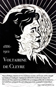For more information on Voltairine De Cleyre, see Paul Avrich’s book, An American Anarchist: The Life of Voltairine de Cleyre, and The Selected Works of Voltairine de Cleyre, edited by Alexander Berkman.