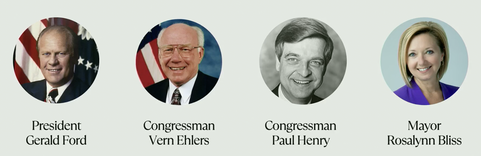 After waxing about cities and democracy, LaGrand then talked about what he really thinks is important – party politics that is non-partisan. He then shares a slide with the images of Gerald Ford, Congressman Vern Ehlers, Congressman Paul Henry and former Mayor Rosalynn Bliss. Really, these are the models for us?