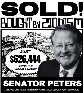 In the final analysis, Senator Peters, who has been the recipient lots of pro-Israel PAC money, completely ignores Israel’s genocidal campaign against the Palestinians and will not support any efforts to reduced US military aid to Israel thus making the US complicit in, along with Senator Peters, Israeli war crimes.