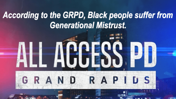 “Generational mistrust” and people not giving cops information as a “societal problem?” It is deeply unfortunately that the producers of this show do not unpack or interrogate these terms, terms which are politically and racially charged. A basic question that could be asked at this point is, do Black people have reason to not trust the police? This is a very basic question, but a critical one to think about and talk about. The All Access PD Grand Rapids show only provides the GRPD’s perspective on this matter. What if viewers heard from Angela Davis, Miriame Kaba, Andrea J. Ritchie, Ruth Wilson Gilmore or Marc Lamont Hill?