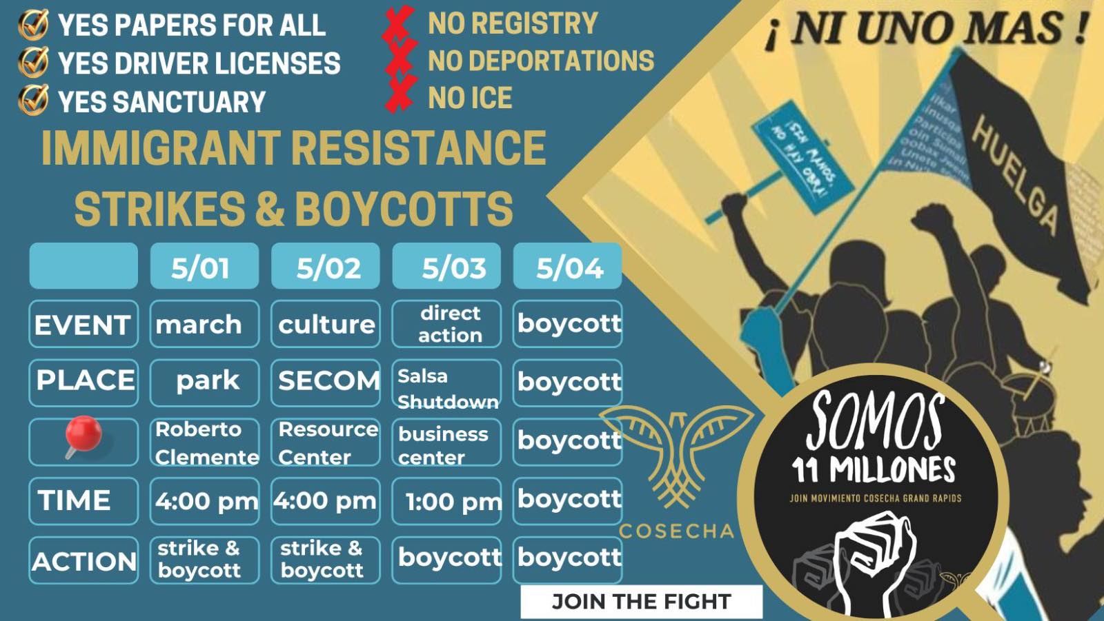 Movimiento Cosecha kicked off their four day strike and boycott with their annual May Day march. The march began at Clemente Park in the southwest part of Grand Rapids, which is the heart of the Latino community.