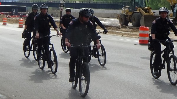The marching finally got underway, with people walking on the sidewalk down Godfrey to Market Avenue. The GRPD bike cops followed along the route making sure that people did not walk on the street.