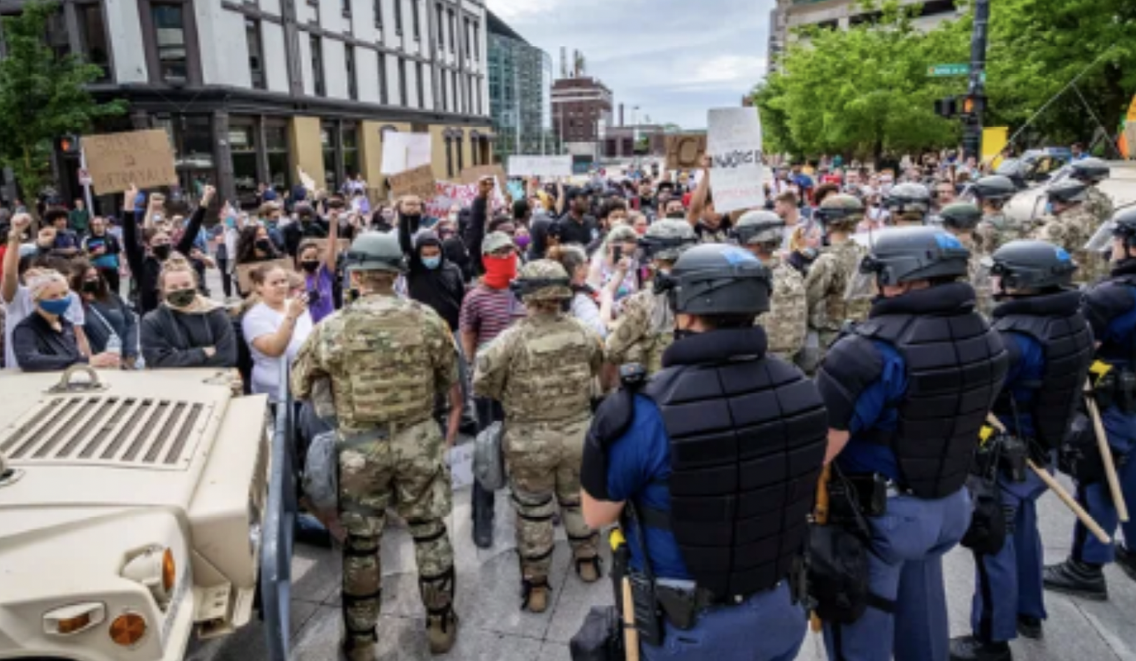 The City of Grand Rapids responded with repressive actions, like a curfew for the downtown of Grand Rapids, plus they called in the Michigan National Guard, which turned downtown GR into an occupied military action. Plus, for the first week after the May 30th uprising, the local commercial news media also hijacked the narrative centered around cops killing Black people.