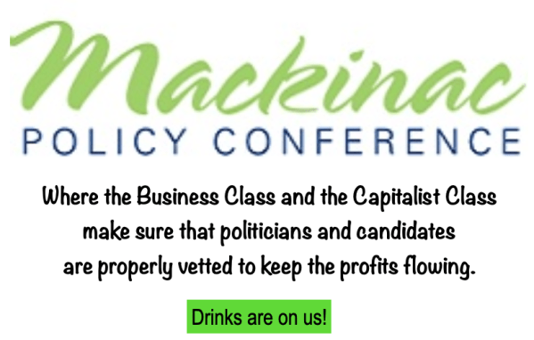 The Mackinac Policy Conference is an event put on by the business class, in order to cater to the Capitalist Class, while inviting the political class to make sure they do what those with economic power really want to see happen in Michigan.