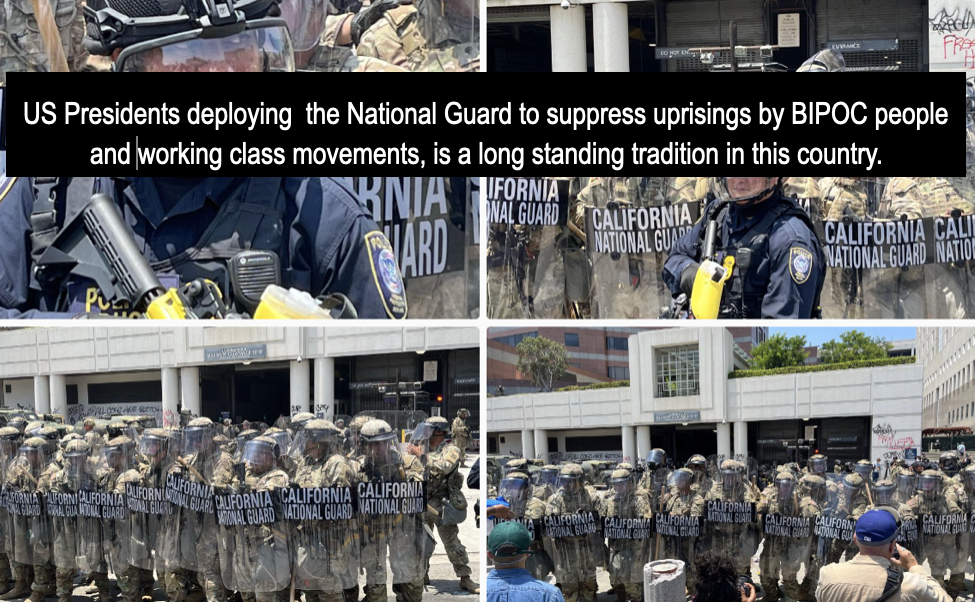 These are only a handful of examples where the National Guard were deployed to put down strikes, uprisings and rebellions. I included the name of the US President in each case and you can easily see that deploying the National Guard to suppress the public is a bi-partisan affair. We should never ignore this history and deny that it has any bearing on what is happening in LA right now.