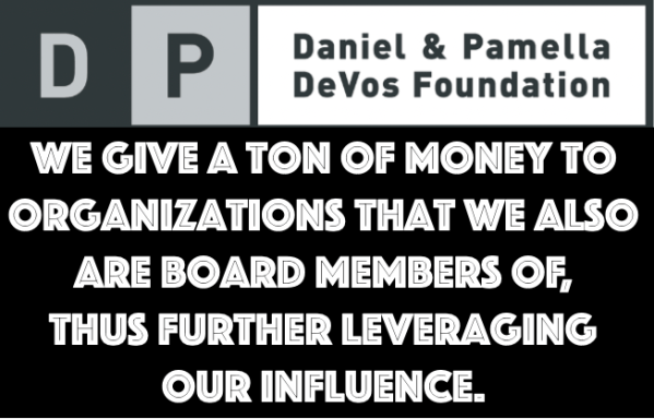 Of course all these entities that were created by DeVos family members, also promote their ideological religious and capitalist values. On top of that, it also means that DeVos family members are funding their own entities and using their foundation to fund their own pet projects, and arts and culture institutions that cater primarily to members of the Capitalist Class.