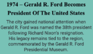 1974 – Gerald R. Ford Becomes President of the United States – Here the GR Chamber ignores what Ford did as President. Ford became Nixon’s Vice President in October of 1973 and was sworn in as President in August of 1974. He served as President until Carter took the oval office in January of 1977. Ford supported the repressive government in the Philippines in its counterinsurgency war against rebels. During the coup in Argentina in 1976, Ford supported the generals who took power and slaughtered thousands of dissidents. Under Ford the US provided millions of dollars in military aid to the right-wing movement in Angola known as UNITA. He negotiated military bases in Spain with the fascist dictator Franco. Ford maintained the illegal terror war and embargo against Cuba and was president during the final days of the US occupation of South Vietnam. But probably the foreign policy that best defines Ford was his support of the Indonesian invasion of East Timor. For more details see For additional information on this topic, see the video, The untold history of Gerald Ford.