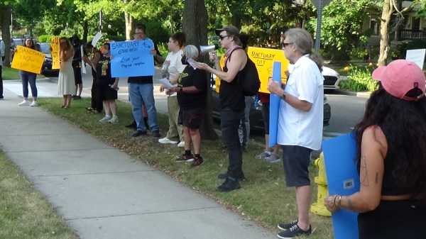 Immigrant Justice groups pay Mayor LaGrand a visit at his home to continue the push for Grand Rapids to adopt sanctuary policies