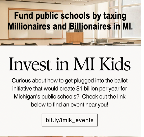 There is a ballot initiative in Michigan called Invest in MI Kids, which is slated to be on the ballot in 2026. The premise of this ballot initiative is to restructure the tax system in Michigan so that millionaires and billionaires will be more in taxes. It’s about time.