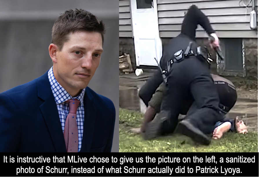The article partly rehashes a vague and misleading narrative about what happened the day that Christopher Schurr shot and killed Patrick Lyoya. Since Kent County Prosecutor Chris Becker has refused to re-try Schurr, as has AG Dana Nessel, Schurr is free of any legal consequences of his actions that resulted in Patrick Lyoya’s death. The MLive article then states: