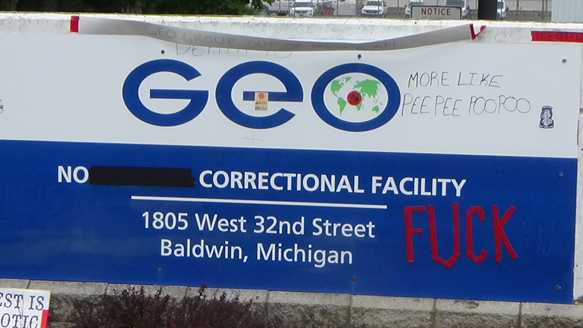 By all accounts the protest on Saturday at the GEO Group-owned ICE Detention facility in Baldwin, Michigan was a success. No Detention Centers in Michigan brought together a coalition of groups to make the protest happen, bring greater awareness to the facility and especially to the people who are currently incarcerated there. A diversity of tactics were used, direct actions took place, and cops never showed up during the 3 hours that the protest lasted. People should be encouraged by the momentum of the action, take that energy back to their communities and build on it and then continue to work of shutting down the GEO Group-owned ICE Detention facility in Baldwin. #AbolishICE!