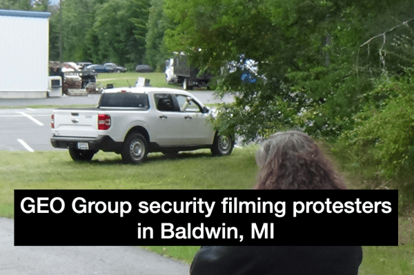 The No Detention Centers in Michigan organized protest featured several speakers and statements from various group that were in solidarity with the protest, all of which were calling for the GEO Group-owned ICE Detention facility in Baldwin to be shut down. Longtime immigration lawyer Richard Kessler, who is representing several people who are already prisoners at the Baldwin facility shared some disturbing news about what the GEO Group was telling prisoners days before the protest. Based on a conversation that Richard had with a client who is in the ICE Detention facility, the client said that the GEO Group was saying that there was going to be “a riot” on Saturday. In standard fashion, the GEO Group hoped to control the narrative about what was going to happen on Saturday, attempted to frame the protest as a riot.