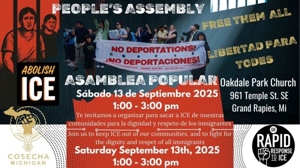 People need to keep the pressure on with Grand Rapids and Kent County officials until they adopt the sanctuary policies laid out by Movimiento Cosecha. In fact, this coming Saturday, September 13, from 1 – 3pm, Cosecha and GR Rapid Response to ICE are holding a People’s Assembly to talk about new tactics and strategies for getting the City and County to adopt sanctuary policies. For details on the People’s Assembly, go here.