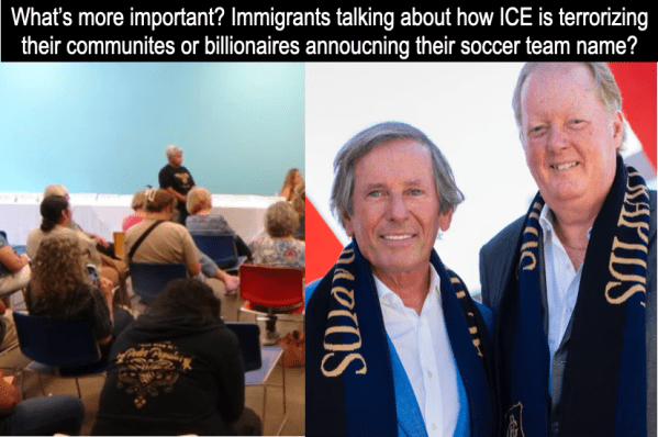 Local commercial news agencies prioritizes stories about new billionaire-owned soccer team name over how immigrant families are being terrorized by ICE