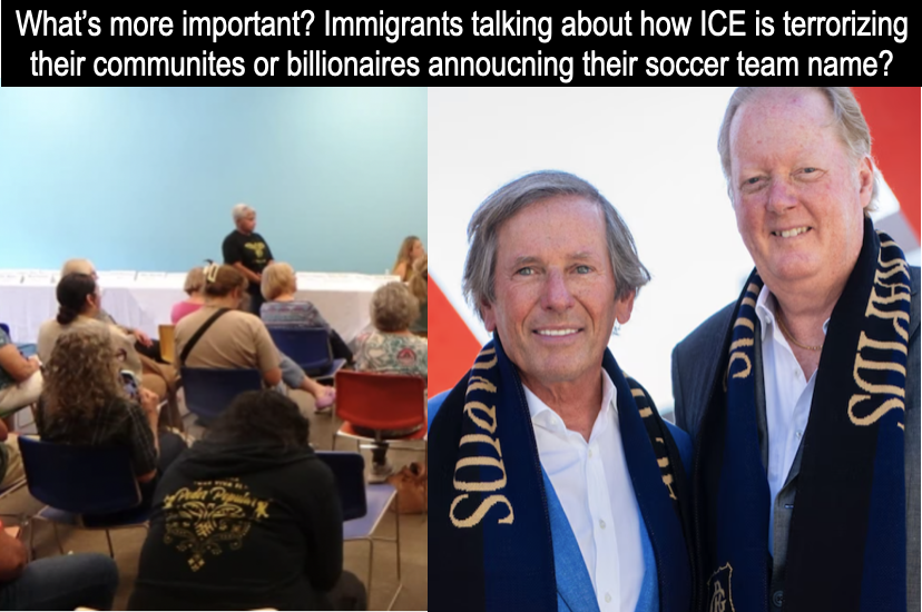Local commercial news agencies prioritizes stories about new billionaire-owned soccer team name over how immigrant families are being terrorized by ICE