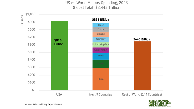 - Spending $914 Billion on militarism means that the US prioritizes US imperialism abroad over funding health care, housing, education or mass transit. The issue is never is there enough money, it is a matter of priorities.