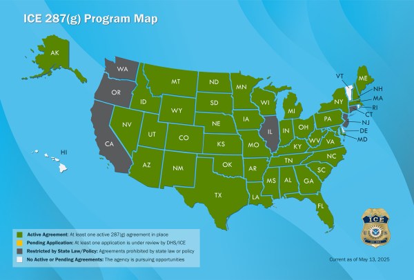 “Starting October 1, 2025, participating law enforcement will have these reimbursement opportunities,” DHS said in a press release posted today. “ICE will fully reimburse participating agencies for the annual salary and benefits of each eligible trained 287(g) officer, including overtime coverage up to 25% of the officer’s annual salary.”