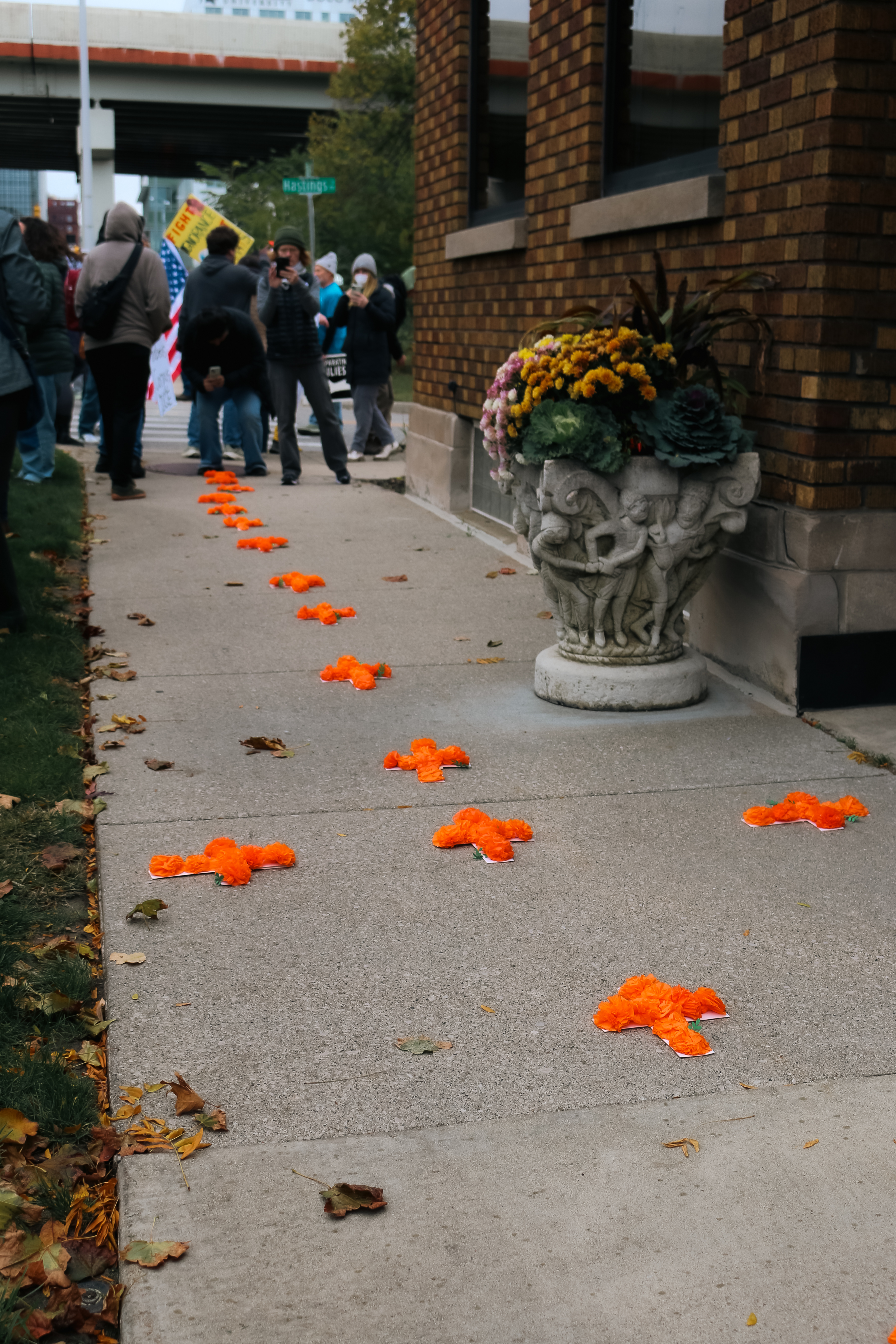 The Day of the Dead vigil outside of the ICE office at 517 Ottawa was facilitated by Rev. Greta Jo Seidohl, who did a great job of creating an atmosphere of grief and mourning, for those that attended the vigil.