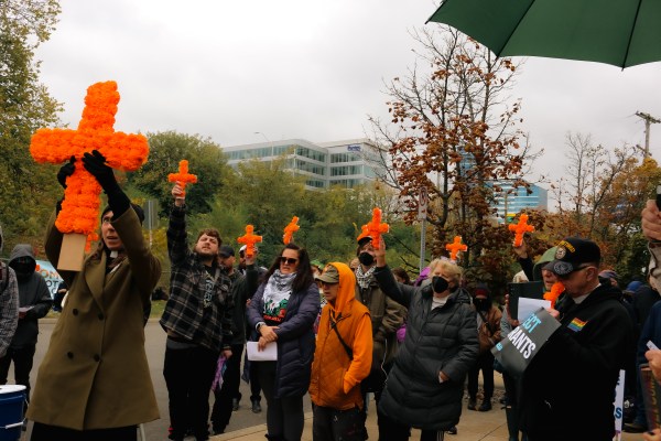 People who held up the handmade crosses when the names of the immigrants who have died in ICE Detention Centers since the beginning of this year were then asked to place them in front of the ICE Office at 517 Ottawa.