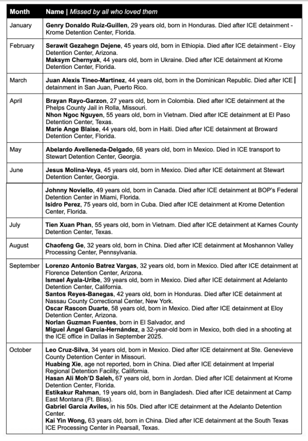 Here is the list of those who have died in ICE Detention Centers since the beginning of the year: