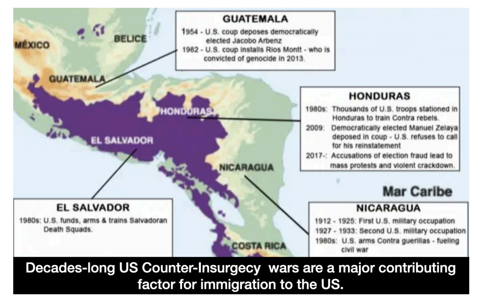 The first reading assignment was from the book, No One is Illegal: Fighting Racism and State Violence on the US/Mexican border, specifically chapters that provided historical context around US military and economic policy that were two of the major contributing factors for why so many people from Mexico were being displaced and entering the US without documentation.