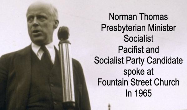 Here is the audio of talk that Norman Thomas gave at Fountain Street Church in 1965. The theme of his talk was on the importance of public dissent!