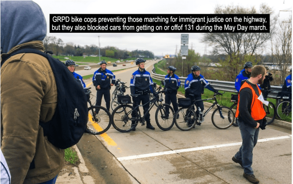 Page 103 – The GRPD says, “Being May 1, that is the date of the Mayday March organized by Movmiento Cosecha, an immigrant rights group that seeks to disrupt traffic each year. Last year was a mess and we expect worse this year.”