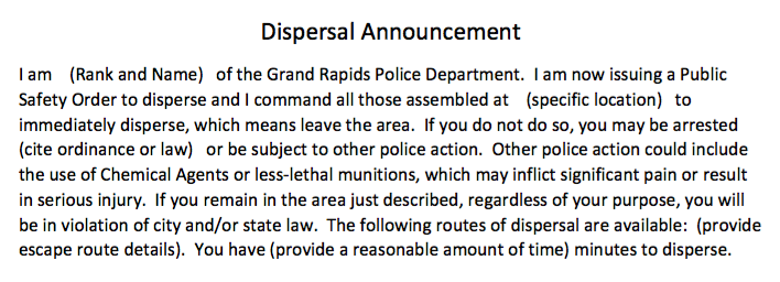 Page 28 – Here the GRPD is talking about a Crowd Management plan, which means they want to manage what those protesting do. The police are always trying to bend actions the way they want them.