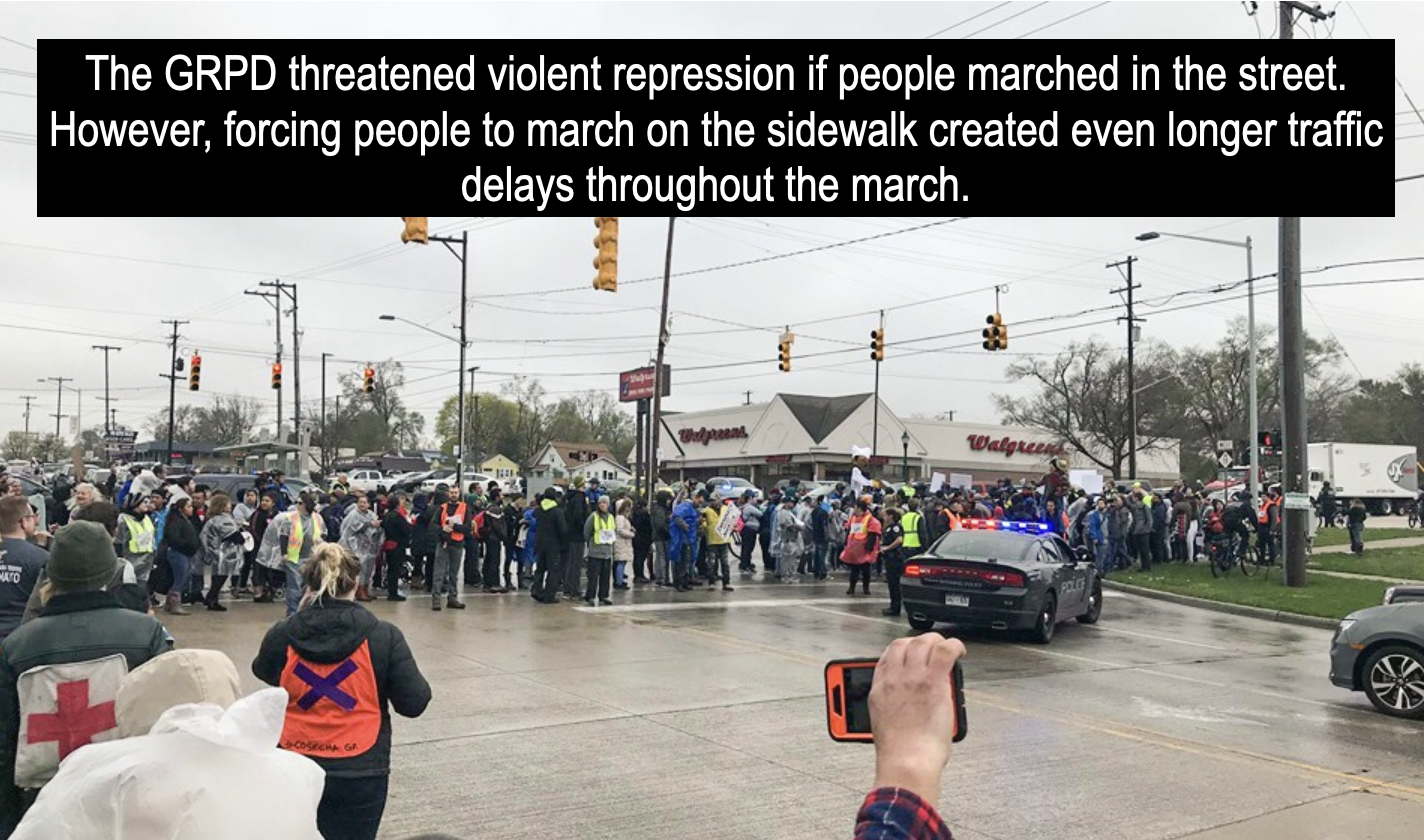 It should be stated that since Movimiento Cosecha GR and it’s ally group, GR Rapid Response to ICE, began organizing in early 2017, the GRPD has consistently engaged in surveillance, monitoring, harassment and intimidation tactics of this movement. On many occasions, when organizers engaged in specific actions, there were as many, and at times, more police officers present than there were those protesting.