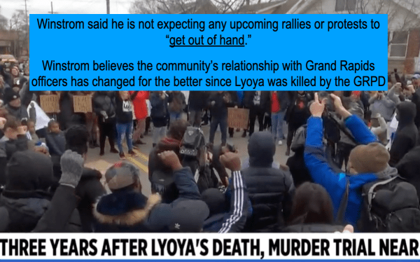 There were also several times where the local news provided Chief Winstrom a platform to misinform the public, stories where the local news acted like stenographers rather than reporters. Here is an example of a story that I critiqued, with the headline, GRPD creates counter narrative about incident from last weekend, while Chief Winstrom claims the cops have regained community trust.