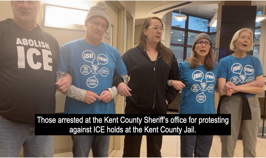 Yesterday there were five individuals who were arrested at the Kent County Sheriff’s office to protest the fact that the Kent County Jail is collaborating with ICE by conducting holds on immigrants.