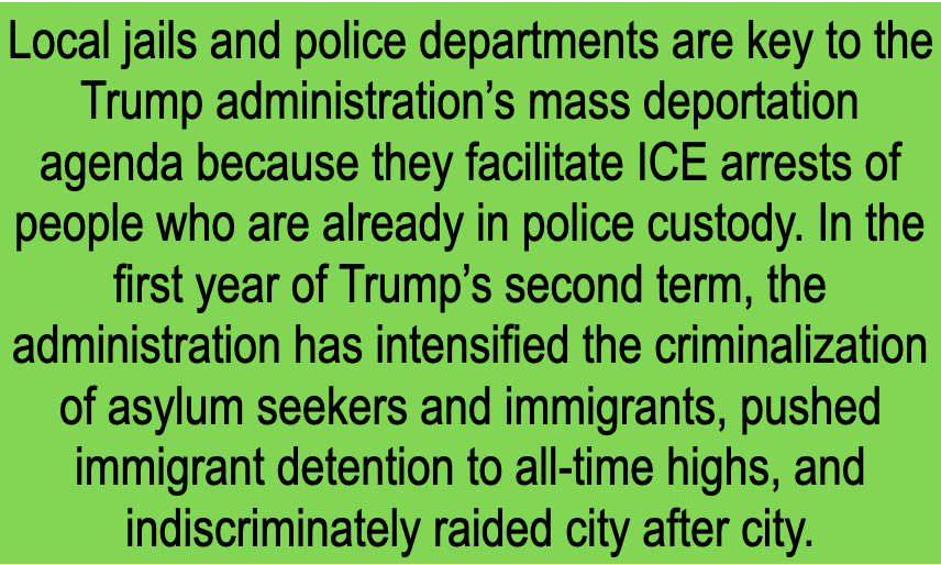 - Policies prohibiting “287(g)” agreements through which ICE deputizes local law enforcement officers to enforce federal immigration law.