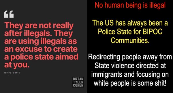 Lastly, the fact that Brian Tyler Cohen is saying that the current administration is creating a police state completely erases the history of what Black, Indigenous and other communities of color have lived under since the US was founded, which has been a POLCE STATE.