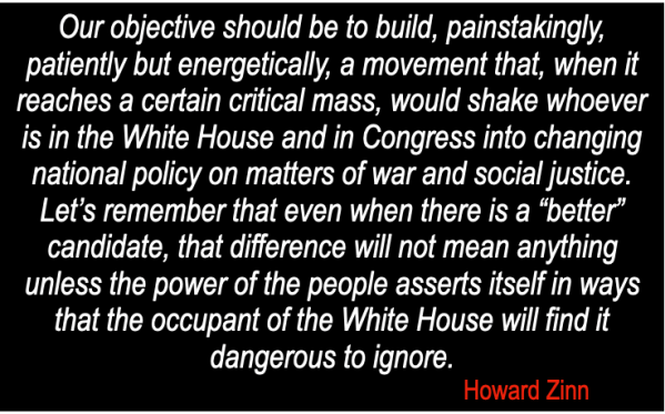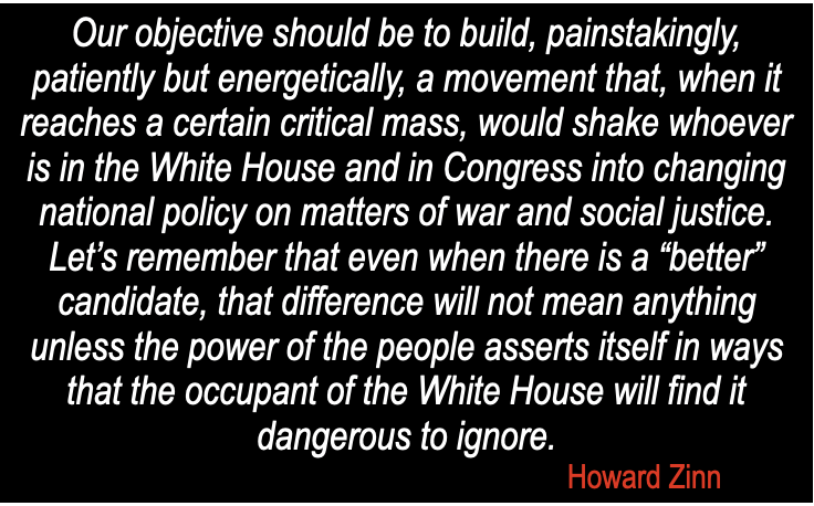 Now, I’m not telling people to not vote or how to vote, but what I am saying is that never in the history of the US has the federal government ever done anything good on their own. To the degree that there has been any fundamental changes at the federal level it has always been because of organized resistance and organized movements throughout history.