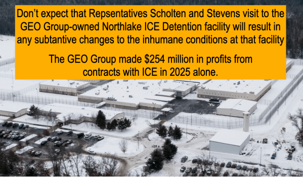 Don’t expect much from the performative letter and visit from Rep. Scholten and Stevens regarding the GEO Group-owned Northlake ICE Detention Facility