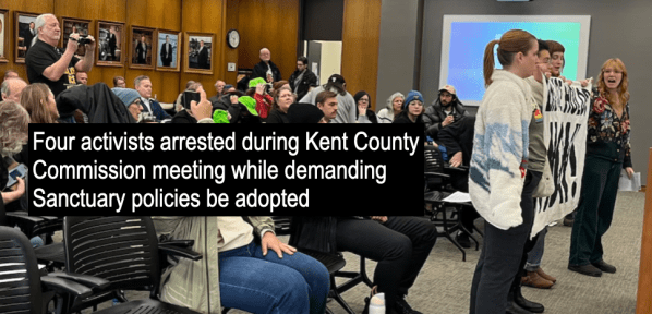 Four arrested today during the Kent County Commission meeting for demanding the commission adopt sanctuary policies that would end collaboration with ICE