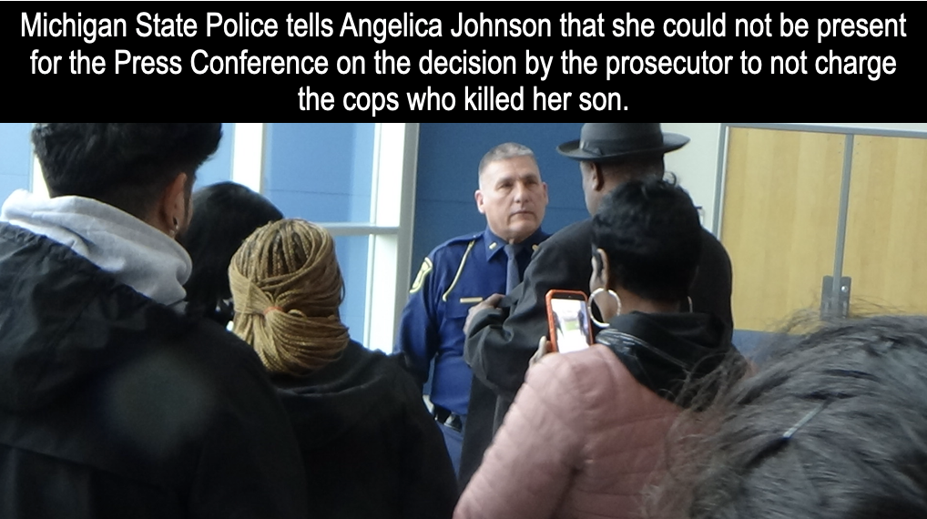 Upon entering the lobby Angelica Johnson was greeted by a Michigan State Police officer who promptly told her that she would not be allowed in the room as it was a news media-only event.