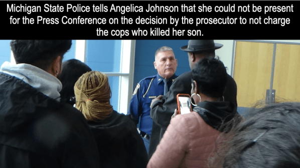 The mother of Da’Quain Johnson arrived at the Michigan State Police headquarters on 4 Mile Rd in Walker, Michigan, just minutes before the Press Conference that Kent County Prosecutor Chris Becker would be presenting his ruling on whether or not to charge GRPD officers in the death of her son.