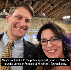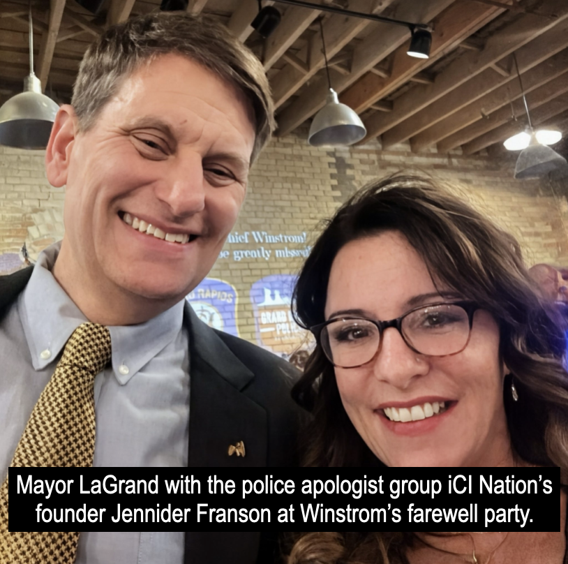 Mayor LaGrand further demonstrated his allegiance to the GRPD and outgoing GRPD Police Chief Eric Winstrom by attending a his goodbye party.